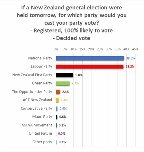 Among those who are registered, have made up their minds and will definitely vote, National has 38.5% support.