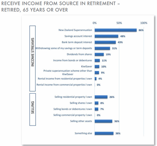 Some 19% are receiving share dividends and 11% income from bonds or debentures, while 10% use KiwiSaver funds and 9% money from superannuation schemes other than-KiwiSaver.