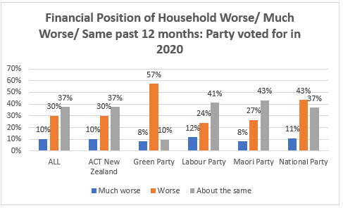 Among supporters for the parties now in Parliament, voters for the Green party (57%) are most likely to say it’s worse, followed by Labour (41%) and National (43%). These are much higher than the result for all respondents (30%).