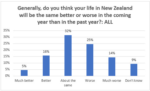Around one in five adults (21%) think their lives in New Zealand will be better in the coming year than the last.