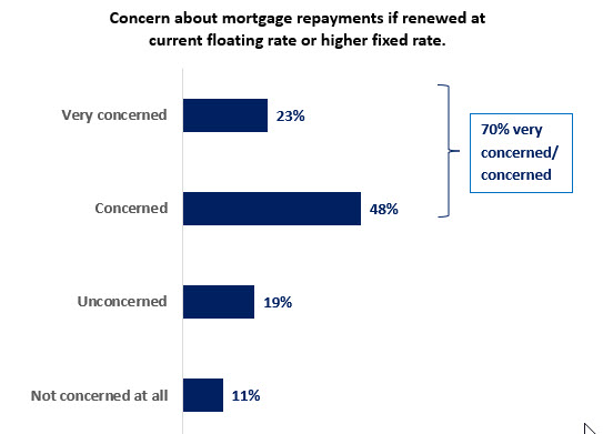 Mortgage stress levels are running high: 70%  of adults with a mortgage are concerned they pay not be able to afford payments if they have to renew at current or higher fixed rates.