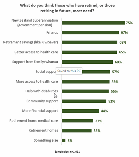 New Zealanders say the government pension and “friends” are the two things most needed by people in retirement.