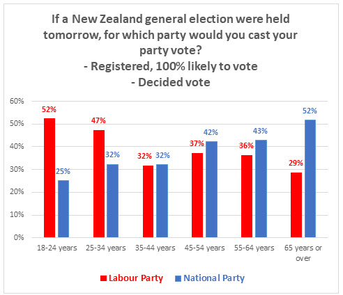 52% of definite voters aged 18-24 support, Labour, 25% National.