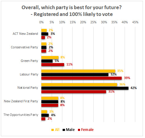 42% of males, however, think National is the best party for their future and 32% think Labour is.