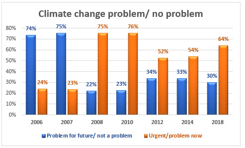 Concern that climate change is an urgent problem or one to be managed now is at its highest level in six years.