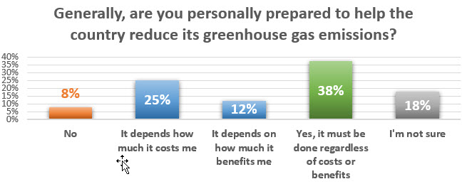 Just over one million New Zealanders say helping the country reduce its greenhouse gas emissions will depend on how much it costs or benefits them.