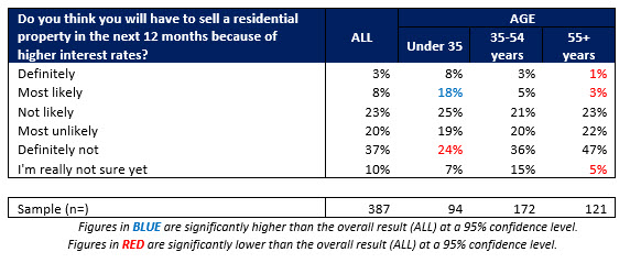 Respondents were asked “Do you think you will have to sell a residential property in the next 12 months because of higher interest rates?”