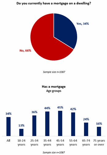 • 34% of respondents (1,341,000 adults) currently have a mortgage on a dwelling.